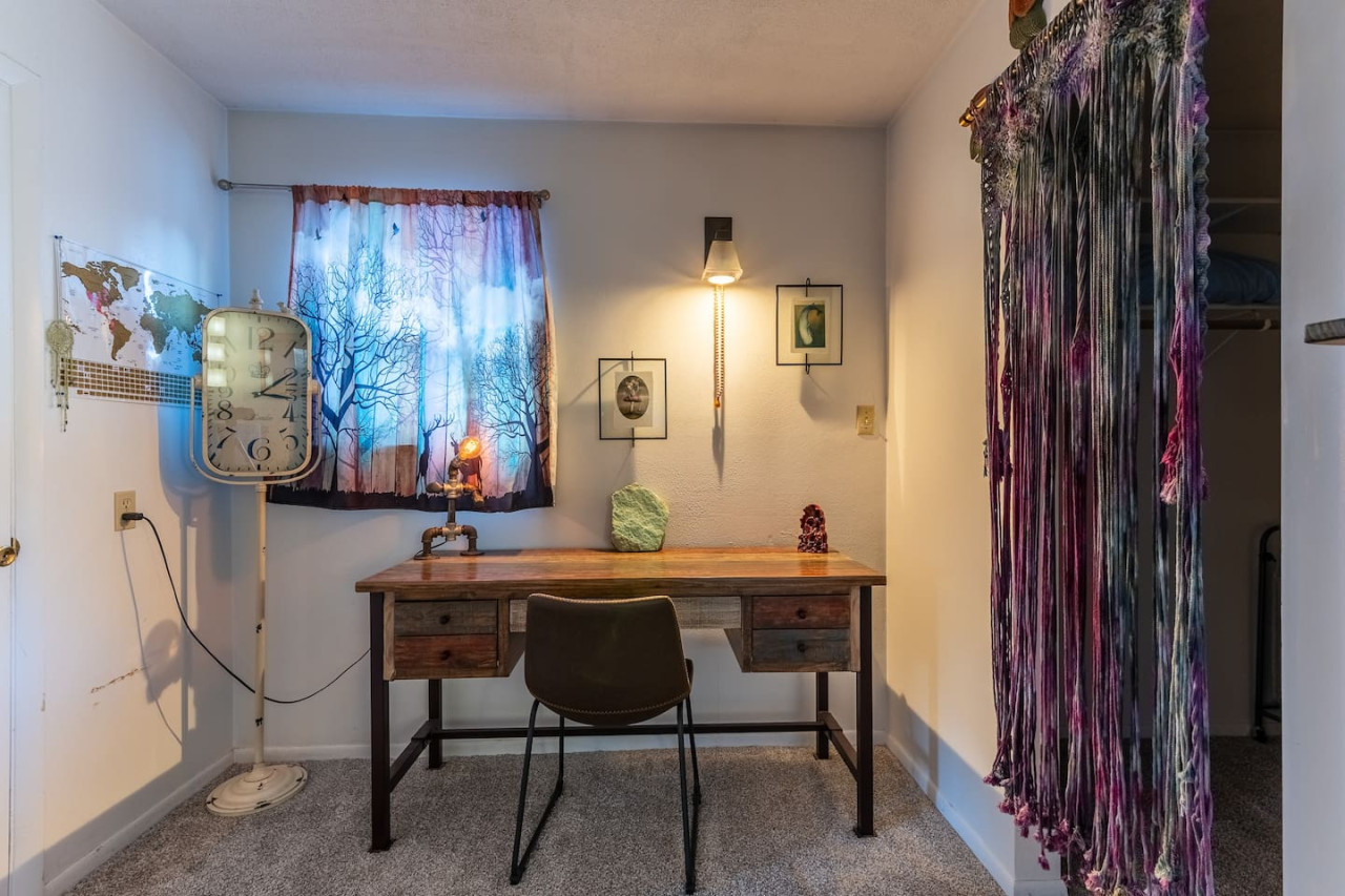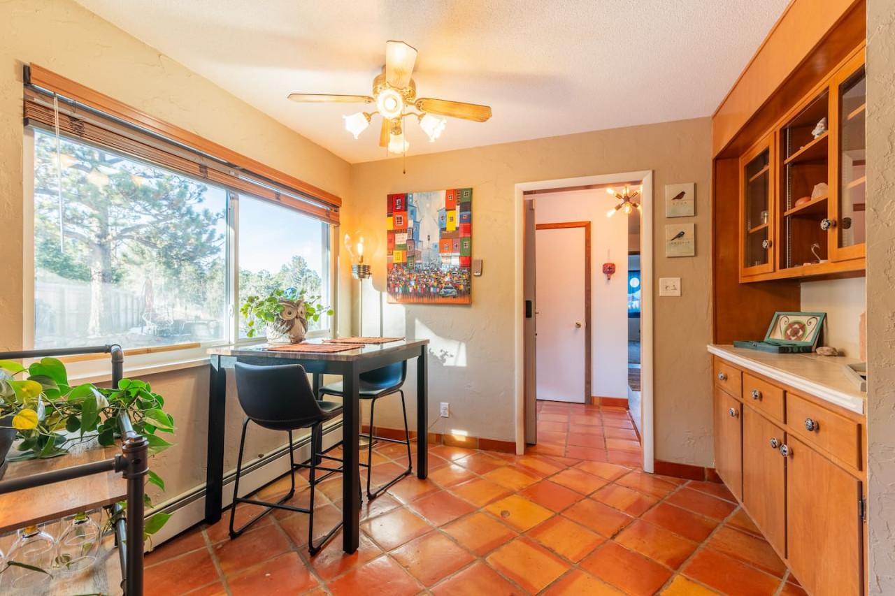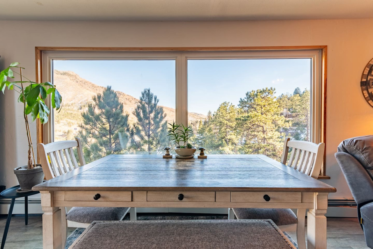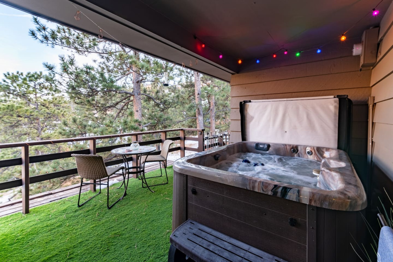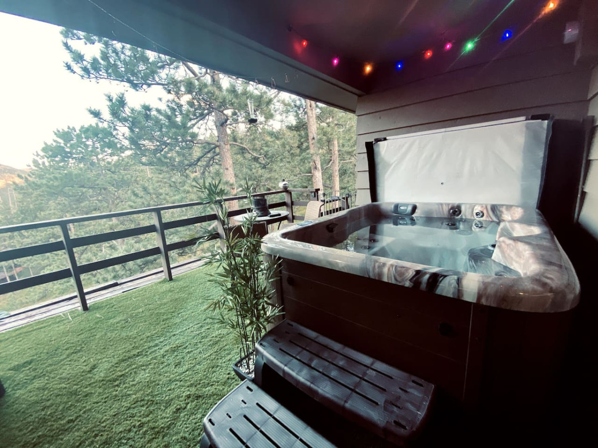 / nightWinnemucca Heights embodies a quiet, romantic getaway in the heart of America. Inspired by my own world travels, this unique rental gives way to remarkable views, eclectic artwork & cozy reading nooks. Ready to experience the snow-capped rockies from your private hot-tub, nestled in a canopy of untouched stars? Whether it be hiking in Pike Nat'l Forest, listening to live music in the funky town of Manitou, or being struck speechless by Garden of the Gods... The mountains are calling; welcome home. Designed by famous architect Elizabeth Wright (Frank Lloyd Wright's granddaughter), this space is unlike any other in Colorado. Enjoy a large front yard with a privacy fence and garden. The back deck has a new, private hot tub, bbq and additional seating so you can enjoy your coffee as the sun rises over the rockies. The open-floor layout includes landscape windows, hardwood floors and a real brick fireplace, as well as, HD tv and other entertainment. Spacious master bedroom includes a king-size, incredibly comfortable bed, along with a dedicated workspace, large tv and walk-in closet. You will constantly be discovering new artwork, practical homeware, and new ways to enjoy your stay! There is a separate guest suite for rent on the property located below you; Winnemucca Spa. You have no shared spaces and the entire listing shown here is private, including all amenities. Please note, both properties are adults only. To rent both listings see; Winnemucca Retreat. Most guests never see each other and many couples ask to extend their stay! You also have access to a private parking spot, a separate entrance, and the entirety of what's shown in this listing. Your entire rental is just for you and all spaces are private. Winnemucca Heights is located in Pike National Forest. Enjoy a walk around the magical lake of Green Mountain Falls, creek-side dining at the Wines of Colorado, or the Blue Moose Tavern for a cold drink. The Pantry offers the best breakfast around and there are unique shops for you to visit. You only need to step out the front door to explore one of the many mountain trails in the area, including a hike to multiple waterfalls. The North Pole is located just down the road, or take a drive up the 14,000 foot mountain, Pikes Peak, one of the only fourteeners in Colorado that you can drive to the summit! A 15 minute drive will take you to Manitou, one of the most unique towns in Colorado, where you can find the penny arcade, tons of restaurants and shopping options, and even enter the Garden of the Gods, a must see in Colorado. If you enjoy wild-life, I highly recommend the wolf rescue sanctuary. 4 wheel drive recommended during winter months (October - May). Taxis are also available or Ubers from Colorado Springs. The closest Ski slopes are 1.5 hours away, (Breckenridge & Copper Mountain) an absolutely stunning drive! I cater to romantic getaways… if you have any special requests, please let me know!
