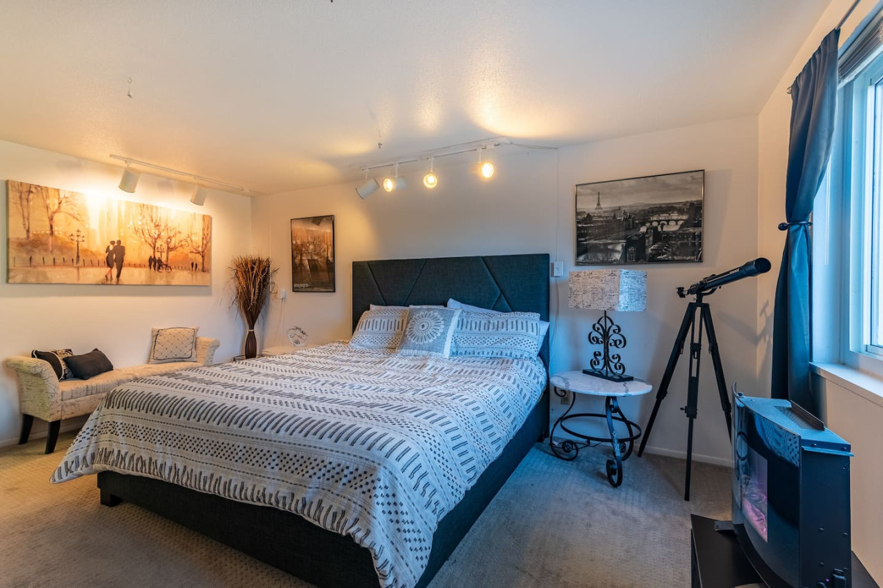 / nightWinnemucca Spa guest suite is perfect for couples and their furry friends to explore Colorado through numerous outdoor activities or simply from the hot tub of a private mountain getaway. As the sun sets and the moon rises over the rockies, romance and relaxation are inescapable. Whether it be hiking in Pike National Forest, listening to live music in the funky town of Manitou, or struck speechless by Garden of the Gods... The mountains are calling; welcome home. The guest suite is attached to the main house but completely separated, including; parking, entrance, indoor wet sauna, hot tub with balcony/bbq, movie room, etc . Outside you have a 1 acre, fenced-in backyard, perfect for your pets to play while you relax in the hot tub. Designed by famous architect Frank Lloyd Wright's granddaughter, Elizabeth Wright Ingraham, this space is unlike any other in Colorado. Elizabeth actually lived here for several years before she sold the home, giving our community unique ties to her brilliant architecture. The romantic master bedroom has a big screen tv and access to thousands of movies and channels. Your private entrance gives you access to a 1 acre fenced in property that leads to numerous hiking trails, including our famous yet remote water-fall hike... Your host Kyla was born and raised in Colorado, and will be able to guide you to the most special experiences Colorado has to offer. Ask about world-class fly fishing, golfing, kayaking, white-water rafting and wildlife experiences! We are located in Pike National Forest. Enjoy a walk around the magical lake of Green Mountain Falls, creek-side dining at the Wines of Colorado, or the Blue Moose Tavern for a cold drink. The Pantry offers the best breakfast around and there are unique shops for you to visit in town. You only need to step out the front door to explore one of the many mountain trails in the area, including a hike to multiple waterfalls. Take a drive up the 14,000 foot mountain, Pikes Peak, one of the only fourteeners in Colorado that you can drive to the summit! A 15 minute drive will take you to Manitou, one of the most unique towns in Colorado, where you can find the penny arcade, tons of restaurants and shopping options, and even enter the Garden of the Gods, a must see in Colorado. If you enjoy wild-life, we highly recommend the wolf rescue sanctuary. 4 wheel drive recommended during winter months (October - May). Taxis are also available or Ubers from Colorado Springs. The closest Ski slopes are 1.5 hours away, (Breckenridge & Copper Mountain) an absolutely stunning drive! There is a separate listing for rent on the property located above you; Winnemucca Heights. You have no shared spaces and the entire listing shown here is private, including all amenities. Please note, the property is adults only. To rent both listings see; Winnemucca Retreat. Most guests never see each other and many couples ask to extend their stay! I cater to romantic getaways… if you have any special requests, please let me know!